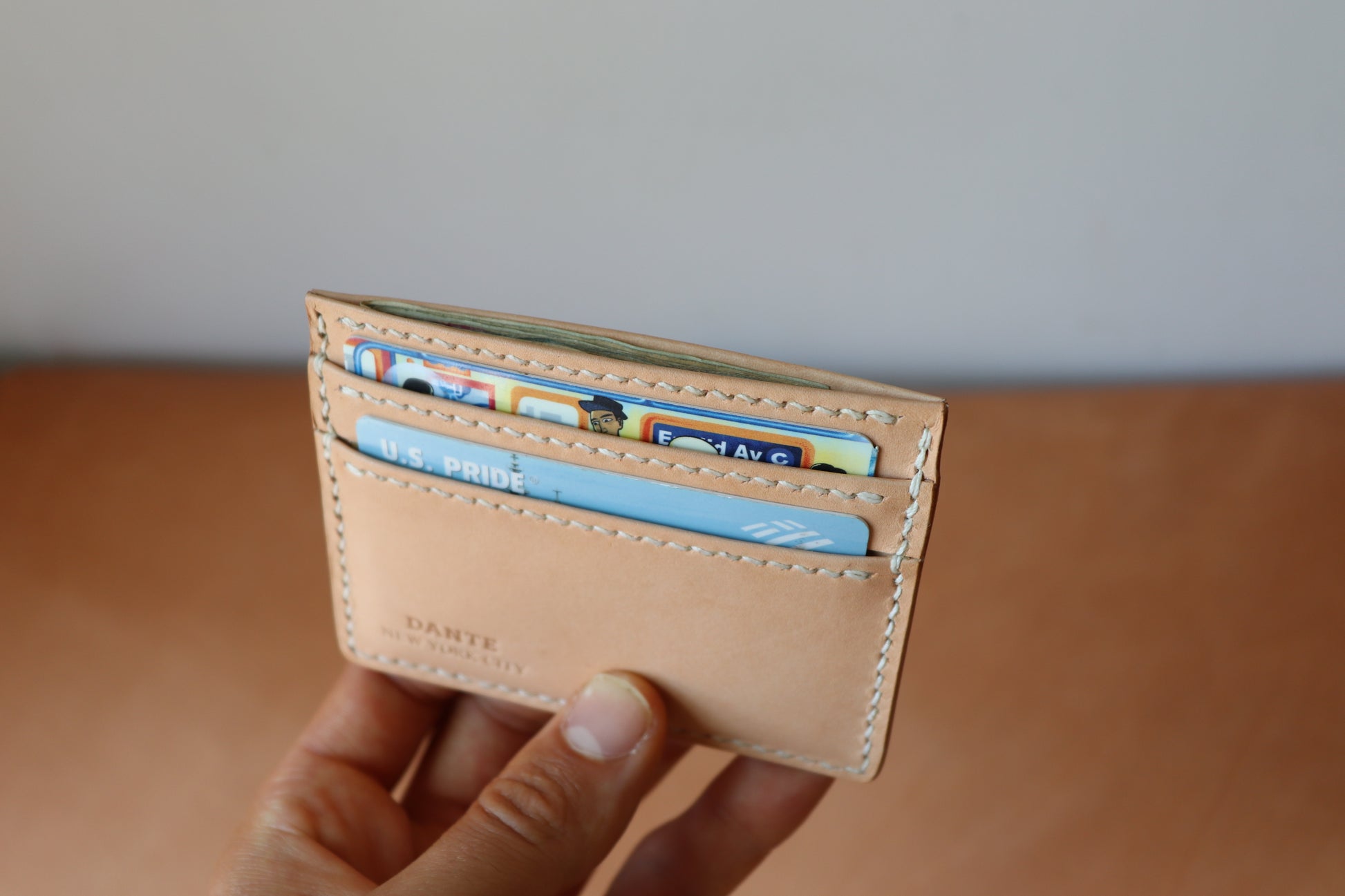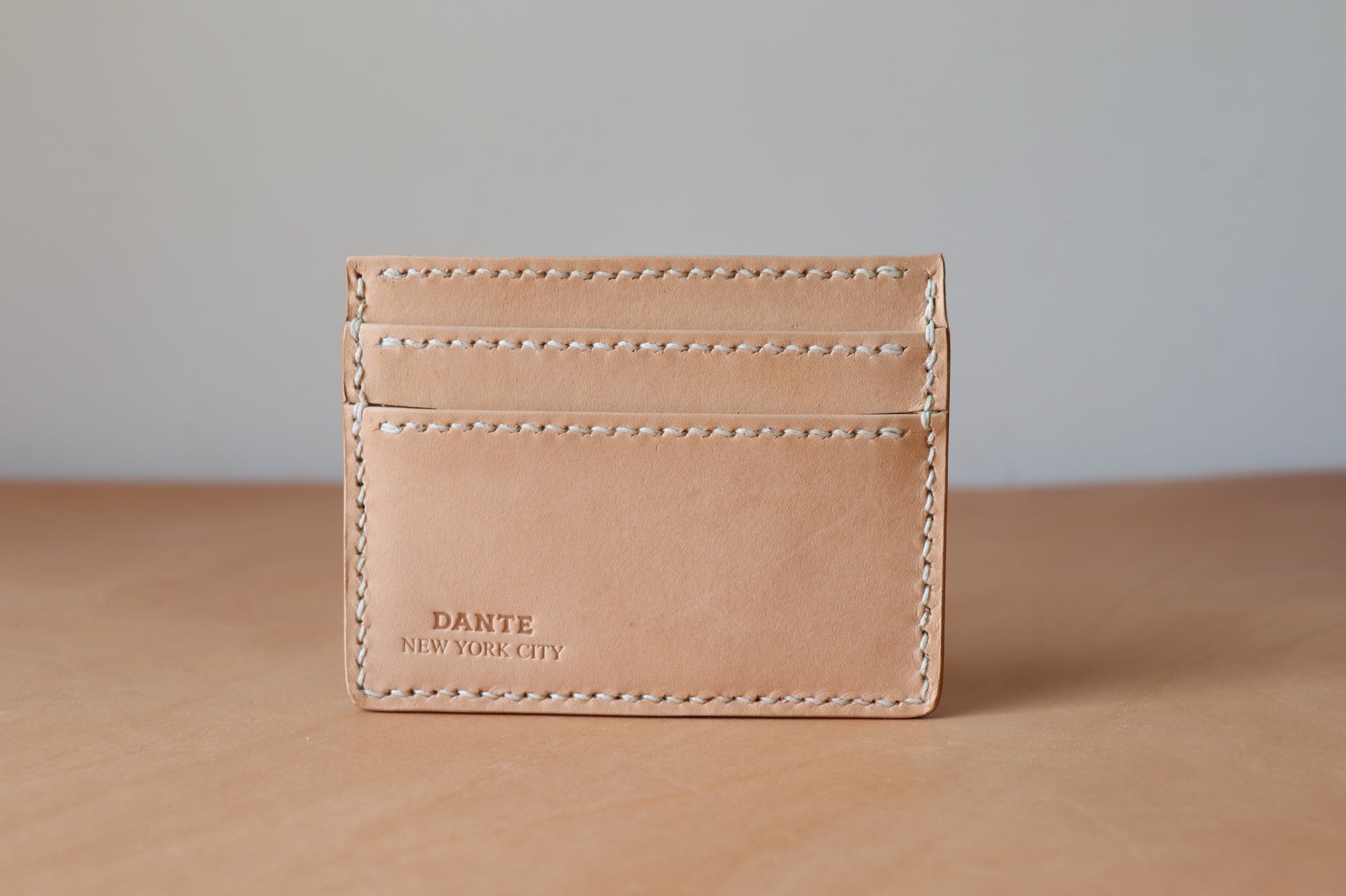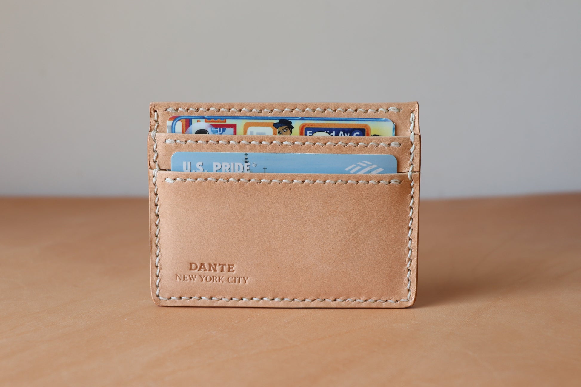 Beautiful, handcrafted card wallet in all natural Vachetta leather
