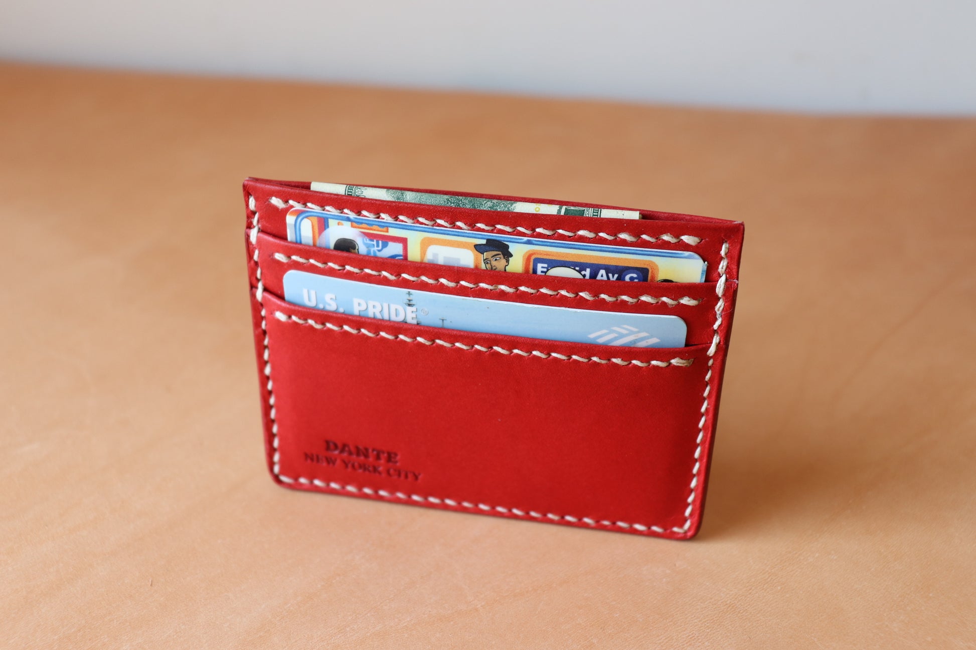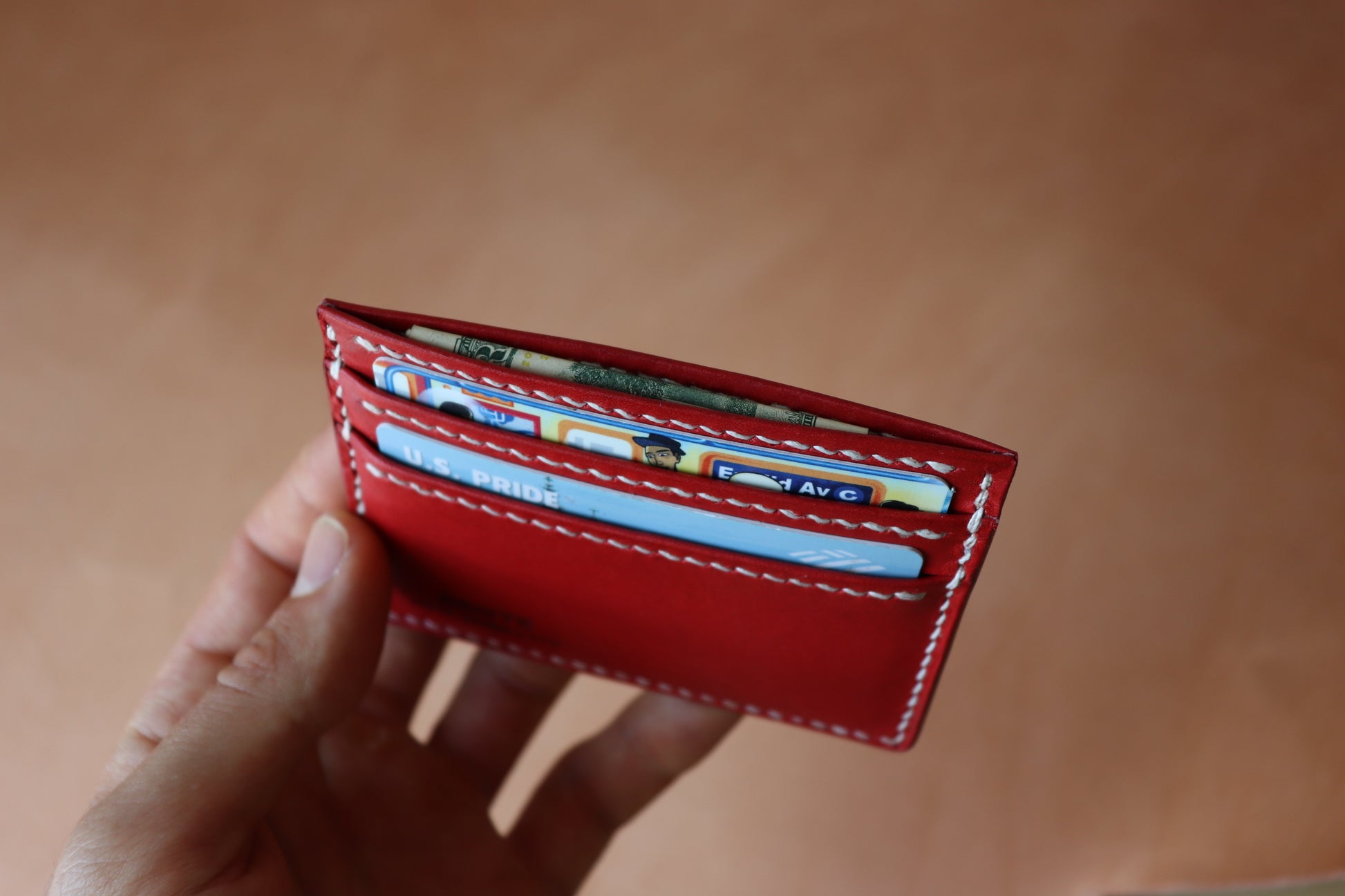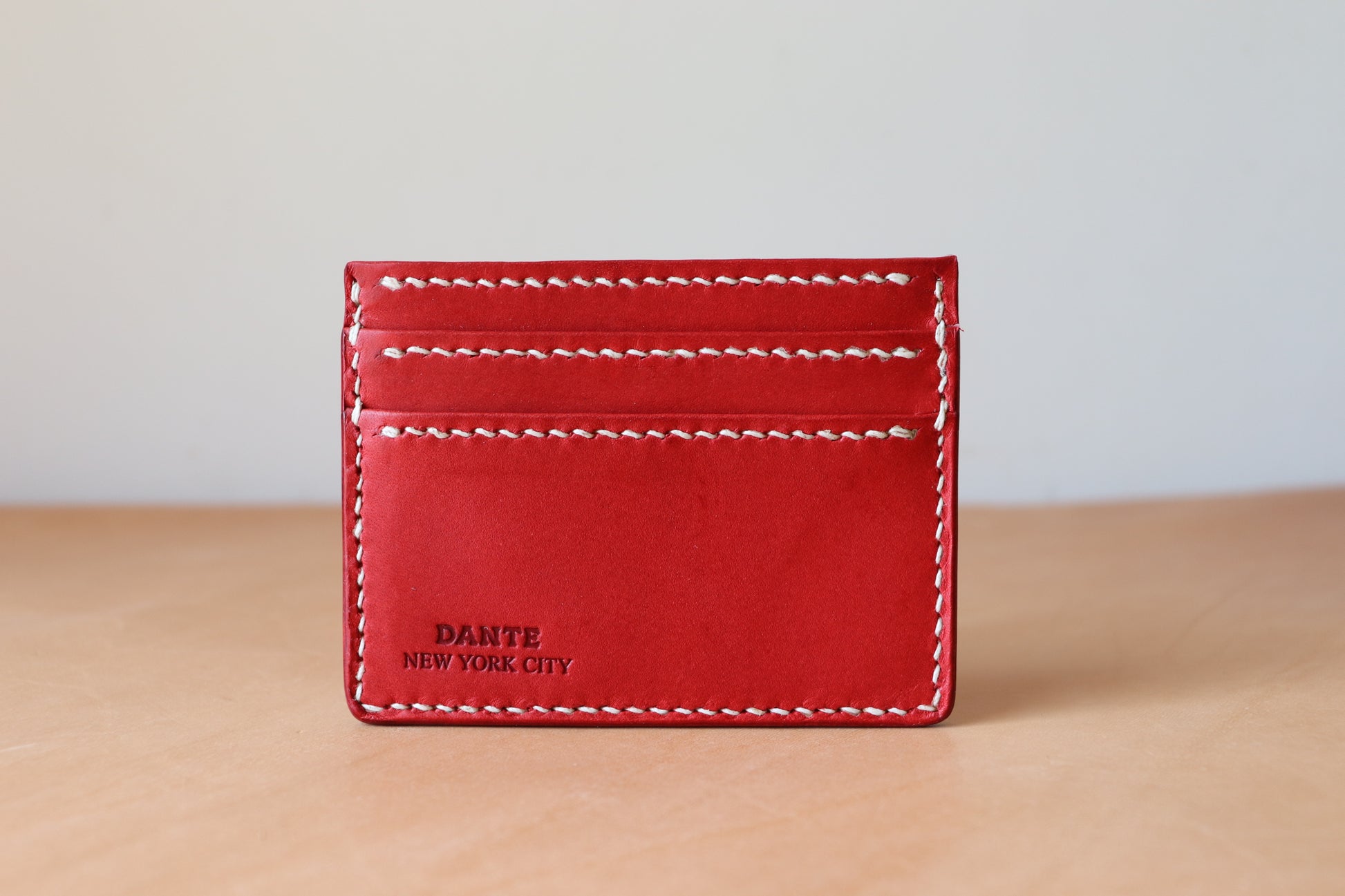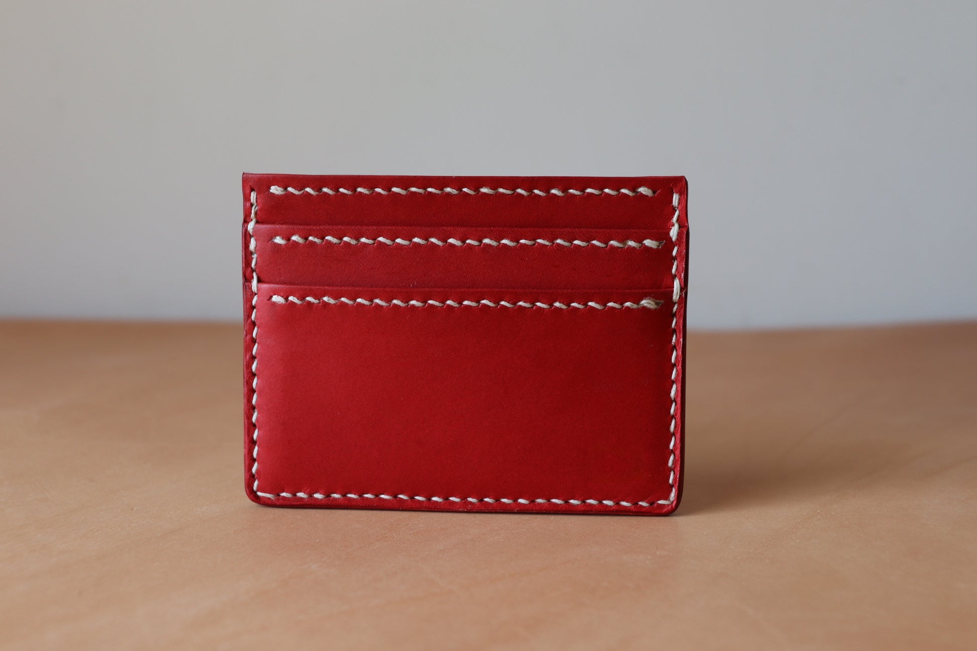 Beautiful, handcrafted card wallet in red Vachetta leather